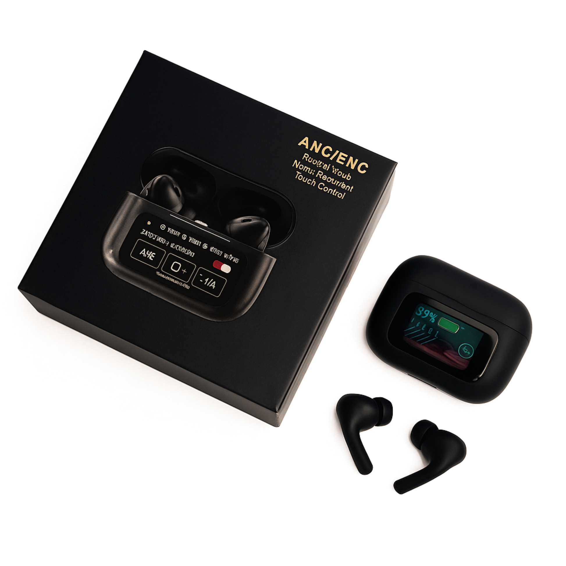 A9 Pro Touch Screen TWS Earbuds - LCD Display Case, ANC/ENC Noise Cancellation